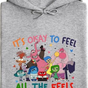 Wrap yourself in comfort and colorful emotion with this “It’s Okay to Feel All the Feels” printed hoodie. Featuring a cast of quirky, animated characters each expressing a different emotion, this hoodie delivers both warmth and a heartfelt message. The soft 50/50 cotton-poly blend feels cozy without overheating, while the durable air-jet yarn minimizes pilling. Designed for fans of expressive style and mental health positivity, it’s a go-to favorite for teachers, counselors, students, and anyone who wears their heart on their sleeve (or chest). Makes a thoughtful gift or an everyday self-care essential.