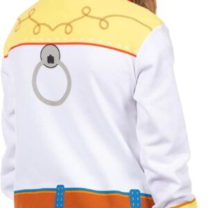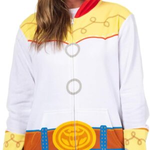This junior’s zip-up Jessie hoodie combines the recognizable details of Toy Story’s beloved cowgirl character with the comfort of a sweatshirt. The design mirrors Jessie’s shirt, with yellow cuffs, belt, and buckle graphics, and a denim-style hemline, while a red hood replaces her hat. Side pockets, a front zipper, and ribbed trim add practical features to this character-inspired piece. The Toy Story franchise has introduced generations to the adventures of Woody, Buzz Lightyear, Jessie, and the rest of Andy’s toys. This Jessie hoodie allows fans to bring a piece of that world into their wardrobe in a wearable way, blending character details with soft, breathable fabric that withstands everyday wear.