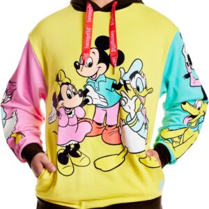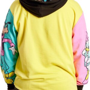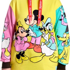 Get ready to cheer, for the gang’s all here! Bring the celebration wherever you go with our Loungefly Disney100 Mickey Mouse and Friends Hoodie. This color-block hoodie features three bright blocks of color and your favorite Disney characters, done up in fun, puffy ink. In yellow, on the front, you’ll find Disney’s Mickey Mouse, Minnie Mouse, and Donald Duck. On one sleeve, in pink, Disney’s Daisy Duck appears, and on the other sleeve, in teal blue, Disney’s Goofy and Pluto say hello. Cozy side pockets are perfect for warming your hands between waving to the crowds. Step out with a little bit of character and celebrate in style.