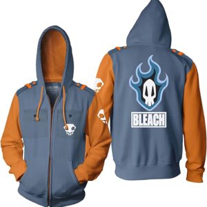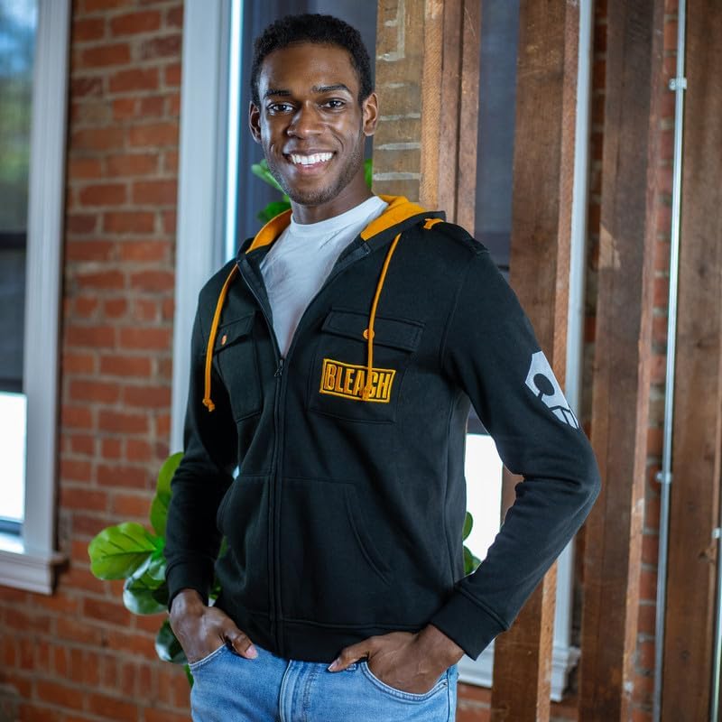 Ripple Junction Bleach Men’s Authentic Full Zip Hooded Sweatshirt w\/Chest Pockets Shoulder Epaulettes Officially Licensed