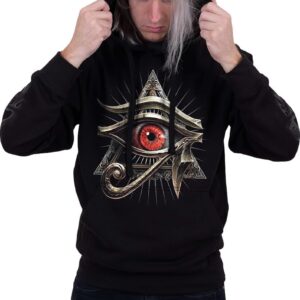 The Eye of Horus looms large over the ancient land of the Pharaohs. In the right hands, it is a symbol of protection and health…but deeply set within this evil God’s withered hand, it has become a tool for destruction and chaos. The Gates to the Duat have been flung open, and the time for reckoning is upon us.. Hoody Black is made of Top Quality 100% Cotton, Fleece using skin friendly, Azo-free, Reactive dyes.