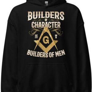Builders of Character Masonic Hoodie, Freemason Square & Compass Hoodie, SM-5XL. Everyone needs a cozy go-to hoodie to curl up in, so go for one that’s soft, smooth, and stylish. It’s the perfect choice for cooler evenings! 50% pre-shrunk cotton, 50% polyester Fabric weight: 8.0 oz/yd² (271.25 g/m²) Air-jet spun yarn with a soft feel and reduced pilling Double-lined hood with matching drawcord Quarter-turned body to avoid crease down the middle 1 × 1 athletic rib-knit cuffs and waistband with spandex Front pouch pocket Double-needle stitched collar, shoulders, armholes, cuffs, and hem Builders of Character Masonic Hoodie, Freemason Square & Compass Hoodie, SM-5XL